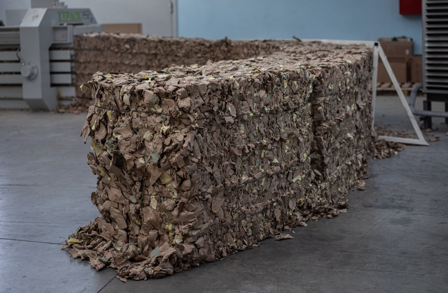На производственных площадках установлены шредеры, которые перерабатывают остатки картонных гильз в брикеты для повторного использования.