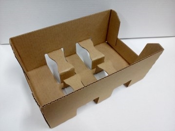 Основное влияние на снижение стоимости упаковки из гофрокартона оказывает уменьшение площади заготовки. Дизайнеры Ново Пакаджинг ББ разработали конструкцию, которая значительно меньше по площади в сравнении со стандартным лотком. Новый конструктив полностью исключает использование вставки под стаканы, заменив ее на самостоятельно формируемые из лотка разделители-фиксаторы. Такая конструкция функциональна в использовании, отлично штабелируется и экономически целесообразна. Расход материала лотка сократился на 21% (расчет сделан для лотка под шесть стаканов весом 330 гр.). Новое решение получило название Eco-tray.