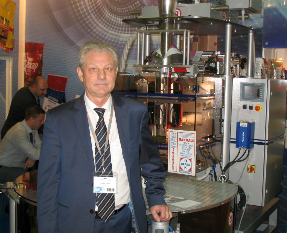 Как всегда, у нас есть новинки в оборудовании, и часть из них мы постарались показать на этой выставке. Здесь мы демонстрируем свою самую востребованную на сегодняшний день технику, чтобы наши клиенты могли посмотреть ее не только на сайте, но и увидеть вживую. Один из наших экспонатов – это линия для фасовки бакалейных товаров. Ее возможности позволяют не только выпускать обычные пакеты с плоским дном, она укомплектована брикетером и производит пакеты с плоским дном и верхом. Такие пакеты легко палетизировать и складировать, и это уменьшает расходы на транспортировку. В данной машине использованы наши запатентованные ноу-хау (мы сами разрабатываем всю технику и пишем софт), и она получилась очень конкурентоспособной.