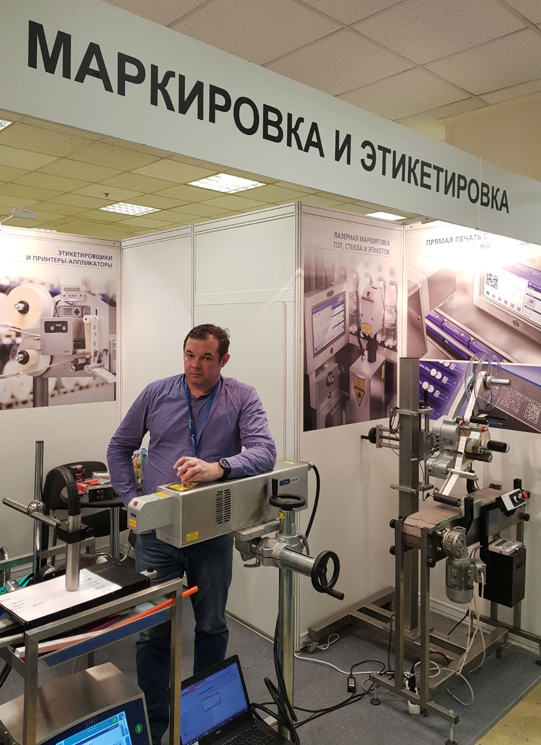 У нас большой спектр различного оборудования, мы всегда привозим его на выставку, и этот раз не исключение. На выставке upakovka мы делаем акцент на этикетировочном и маркировочном оборудовании. Поэтому у нас на стенде представлена каплеструйная, лазерная техника, термотрансферное оборудование, этикетировочные машины.
